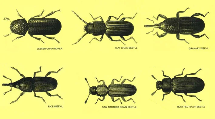 As the insecticidal activity of Absorbacide® lies in its drying properties, very high humidities reduce its effectiveness. It is not significant when the periods of high humidities are seasonal, e.g. a wet winter season, however, if high ambient humidities (70% or more) prevail throughout the year Absorbacide® should be tested in that situation prior to regular use. For the same reason, treatment of damp food commodities should be voided. Recommended moisture contents for long-term storage protection are: